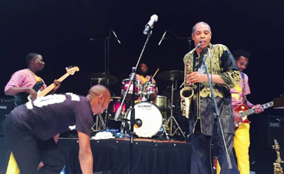 But the audience went wild, clapping and cheering when Seun joined Femi on stage to do some dance steps and sing alongside him. He prostrated before Femi, his elder brother to emphasize that he (Femi) was the reigning “King” of Afrobeat music. They performed together their late father’s evergreen song, “Water No get Enemy” which held the audience spellbound as they kept standing and shouting until the performance ended. The performance was the highpoint of the night. The duo invoked the ghost of Fela on stage.